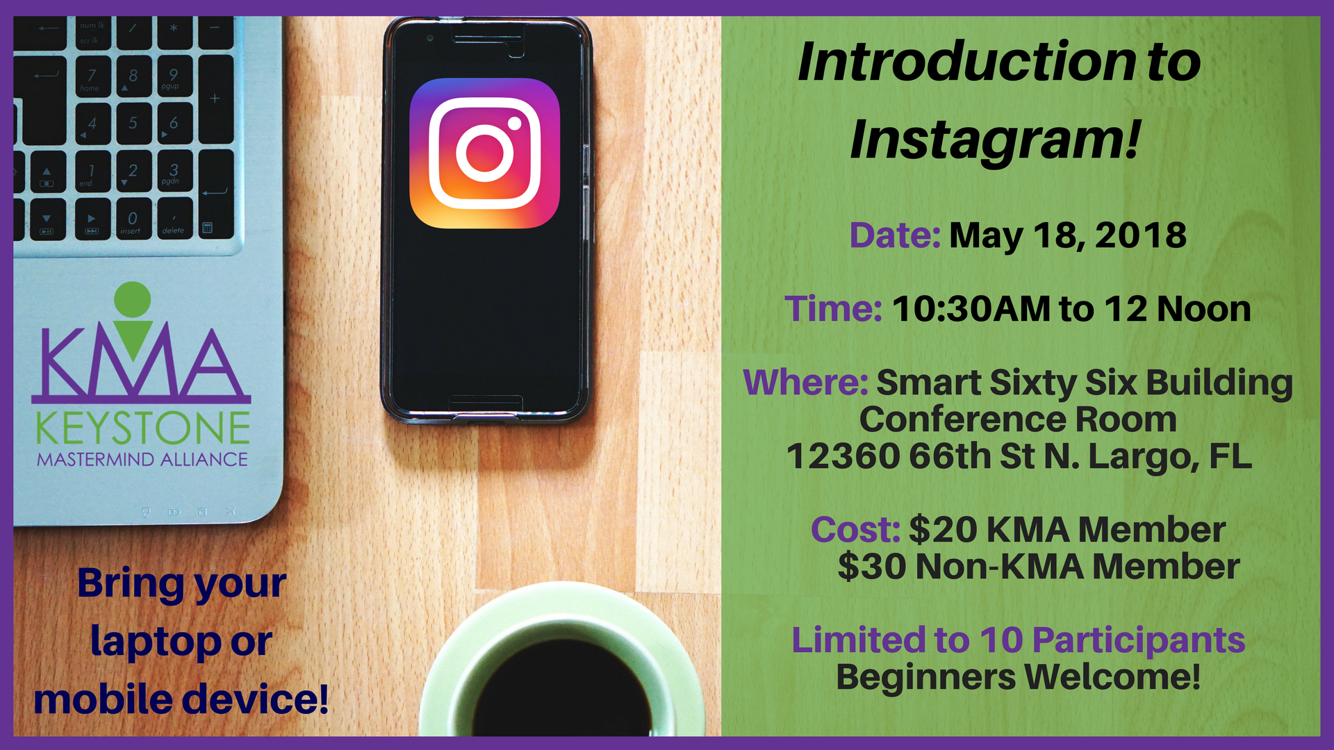 Seating is limited to 10 attendees, so please register as soon as possible to get your spot. KMA Membership is not required to attend, this workshop is open to the local business community. Please use the drop down menu below to select your price category and book your seat for the workshop.